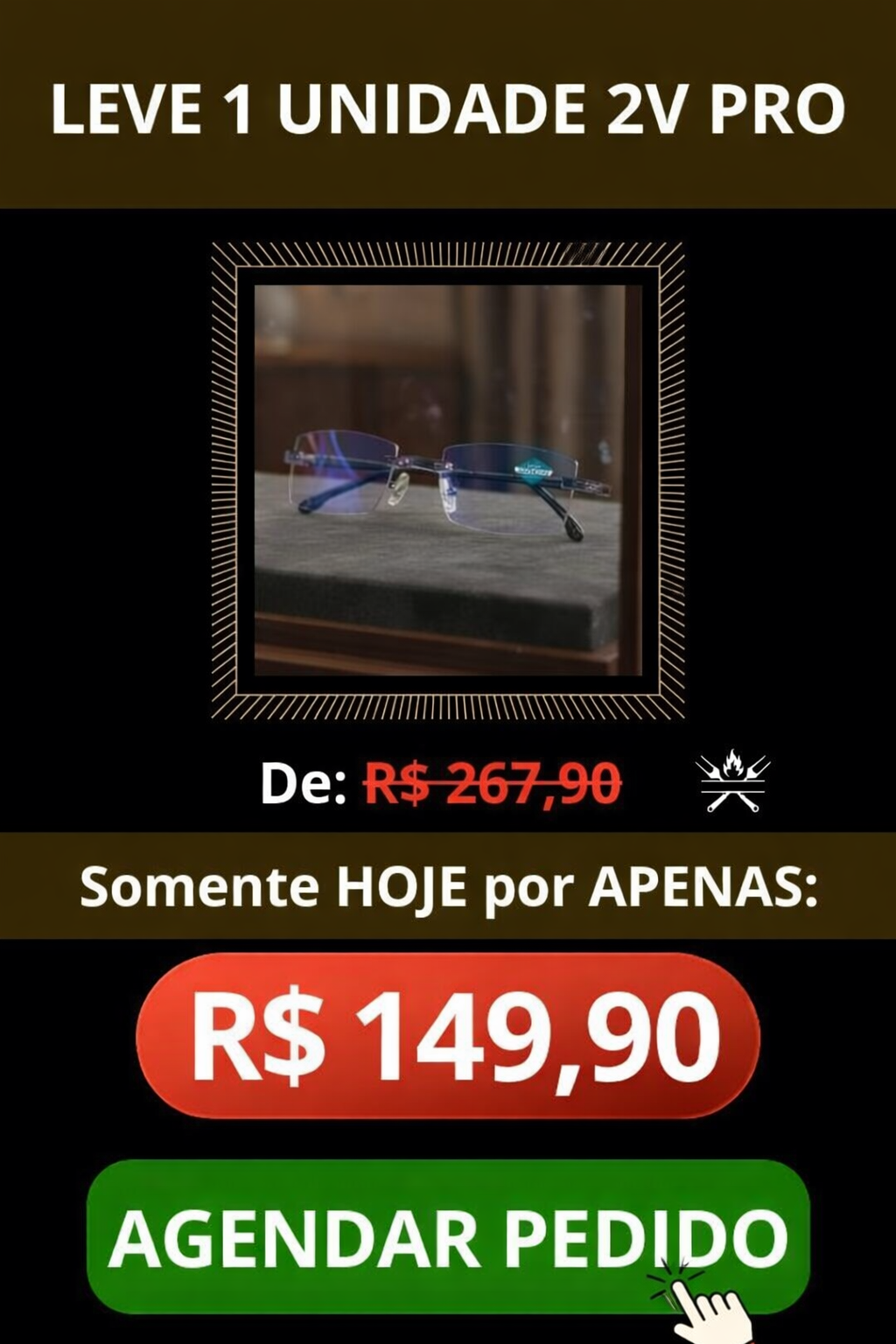 Óculos 2V Pro com 50% de desconto e com FRETE GRÁTIS, agende seu pedido no botão abaixo:
